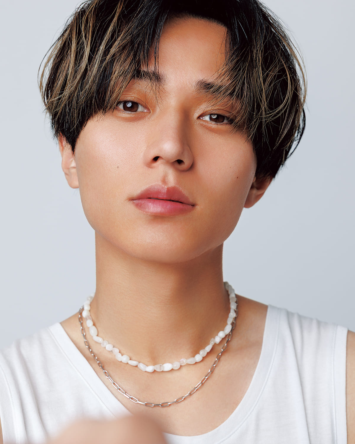 パールネックレス ¥7,700、チェーンネックレス ¥23,100(ともにOyire_/JOYEUX)その他すべてスタイリスト私物